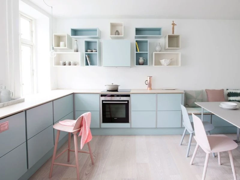 4.6 Mẫu thiết kế phòng bếp với bảng màu pastel