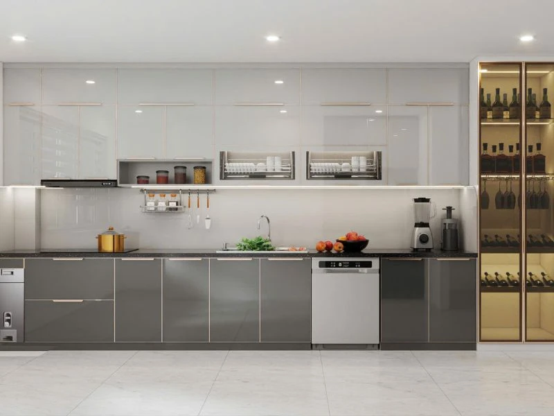 2.3 Thiết kế phòng bếp có tủ bếp, bộ phụ kiện bếp thông minh