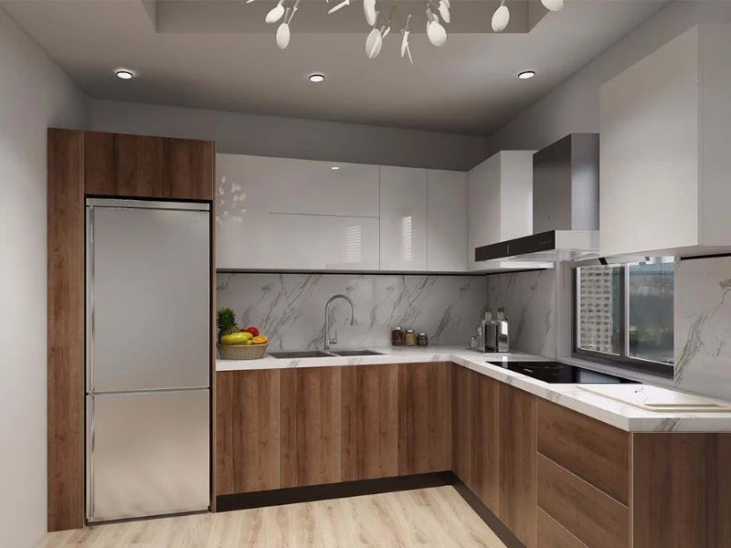 Trong các căn hộ chung cư hiện đại, thiết kế tủ bếp chữ L được ưa chuộng nhờ khả năng tận dụng tối đa góc tường và mở rộng khu vực sử dụng một cách hợp lý. Kiểu bố trí này giúp phân chia rõ ràng các khu vực chức năng mang lại sự thuận tiện trong quá trình sử dụng hằng ngày. Với cách sắp xếp khoa học và linh hoạt, tổng thể khu vực bếp trở nên hiện đại, gọn gàng và phù hợp với lối sống đô thị.