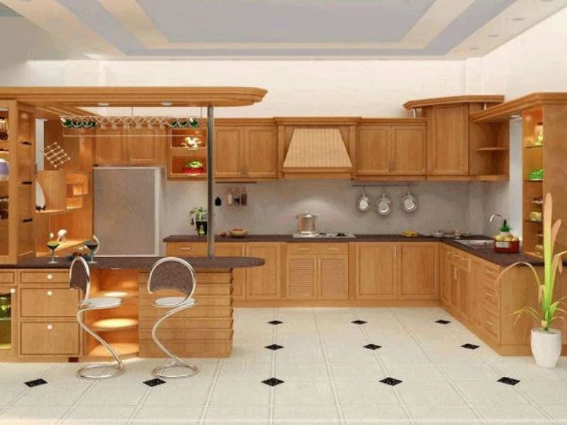 4.7 Mẫu thiết kế phòng bếp đẹp bằng gỗ tự nhiên