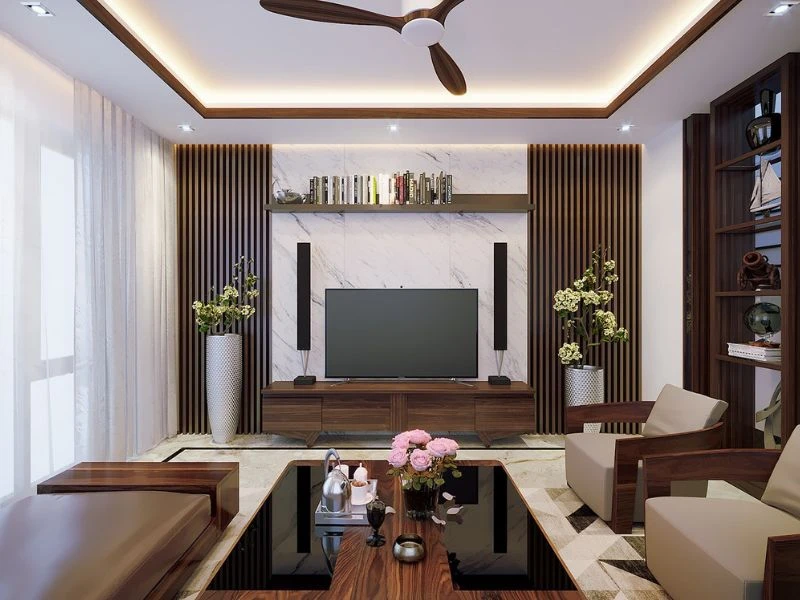 5.1 Thi công nội thất phòng khách đơn giản, hiện đại